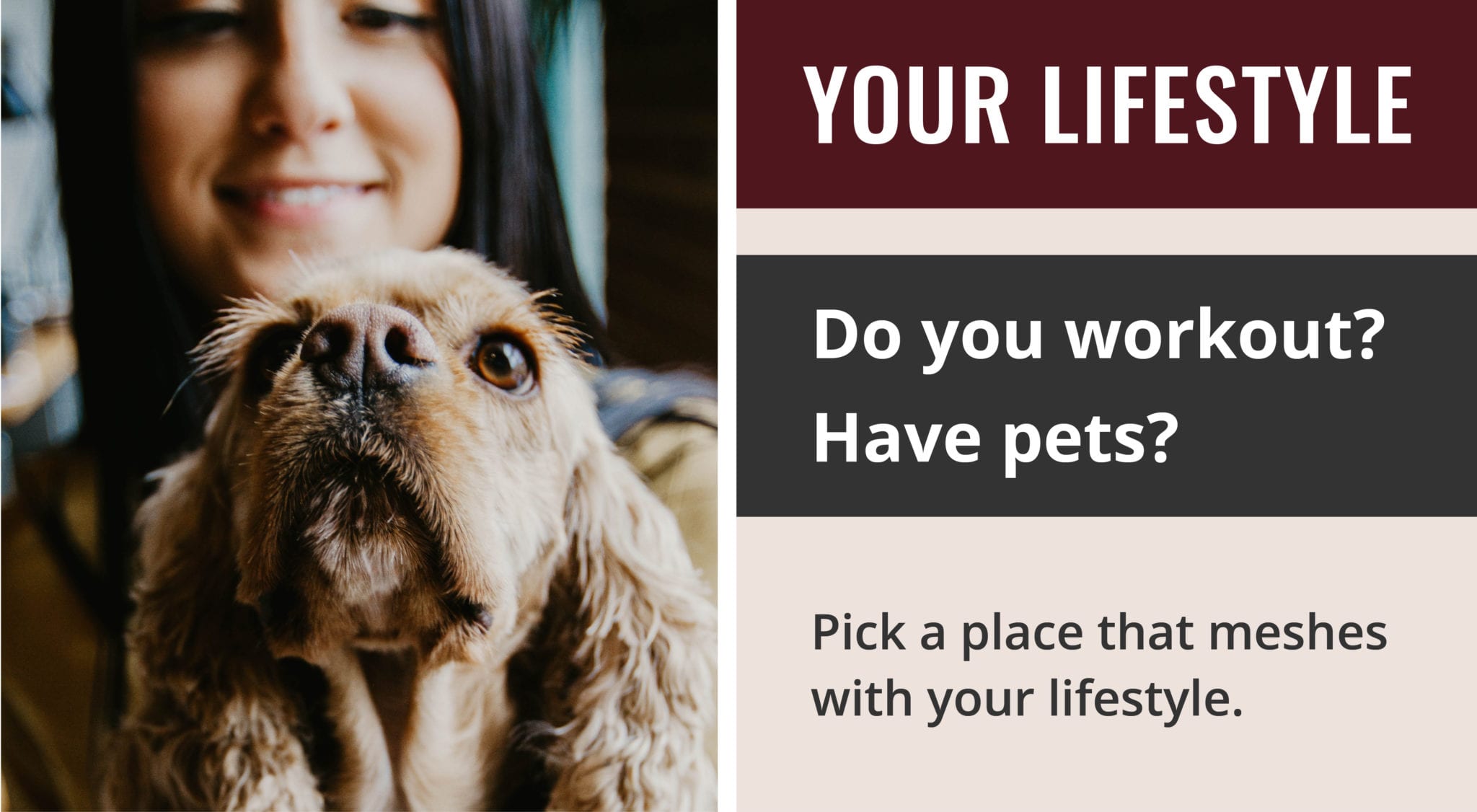 While this category is rather open-ended, that’s a good thing! Consider your must-haves for any place of living — do you need a dishwasher? A full bathtub? Easy access to walking paths or your place of work? Do you have roommates and need your own space? These are just a few of the questions you should ask and consider when choosing a place to live.